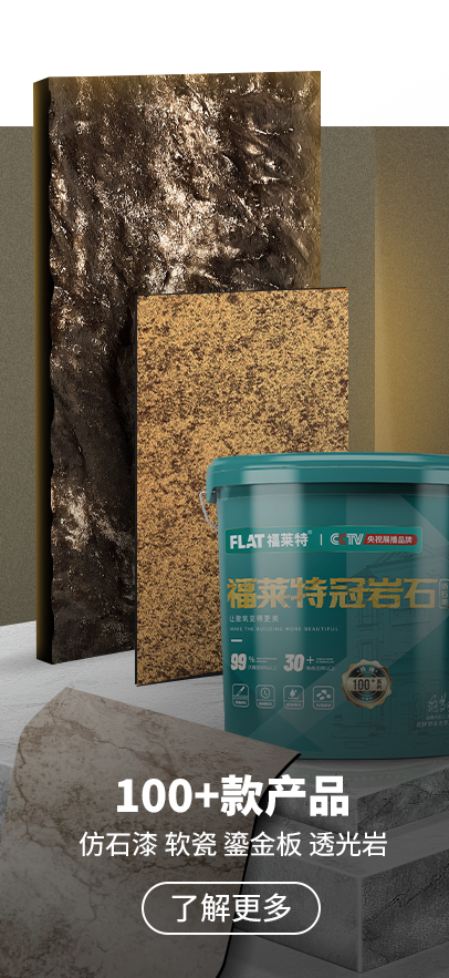 福萊特建材二十多年專注:仿石漆、軟瓷、鎏金板、透光巖等新型建筑裝飾材料,注重環(huán)保與可持續(xù)發(fā)展,為用戶提供健康、安全的建材產(chǎn)品,深受消費者喜愛廠家之一。